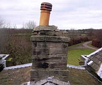 The flaunching decays more readily than the pots, usually by frost action. It is a simple matter to replace the flaunching but take care not to damage the pots when trying to clean off the previous hard cement mortar flaunching. The only practical solution for broken chimney pots is facsimile replacements.