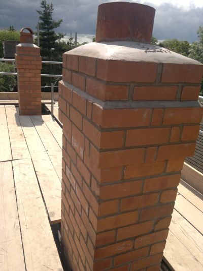 To comply with The Building Regulations any rebuilt section will have to have an internal diameter of 200mm (although 185mm is acceptable for a relined flue), so some ingenuity may be required to incorporate a flue liner within the original stack dimensions. If it is decided that the existing lean on a stack can be tolerated the factors inducing the lean should be stabilised. The flue should be lined (see Parging Failure below, and broken or decayed bricks should be cut out and replaced.