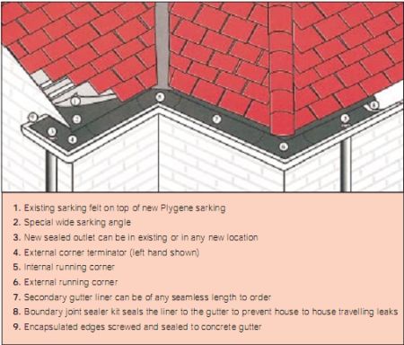 It also incorporates a heavy-duty Plygene sarking angle designed to deflect all run-off water into the outer trough. Gutterline is easy to install, requires no structural disruption to the property and so there is no need to rehouse the occupants.